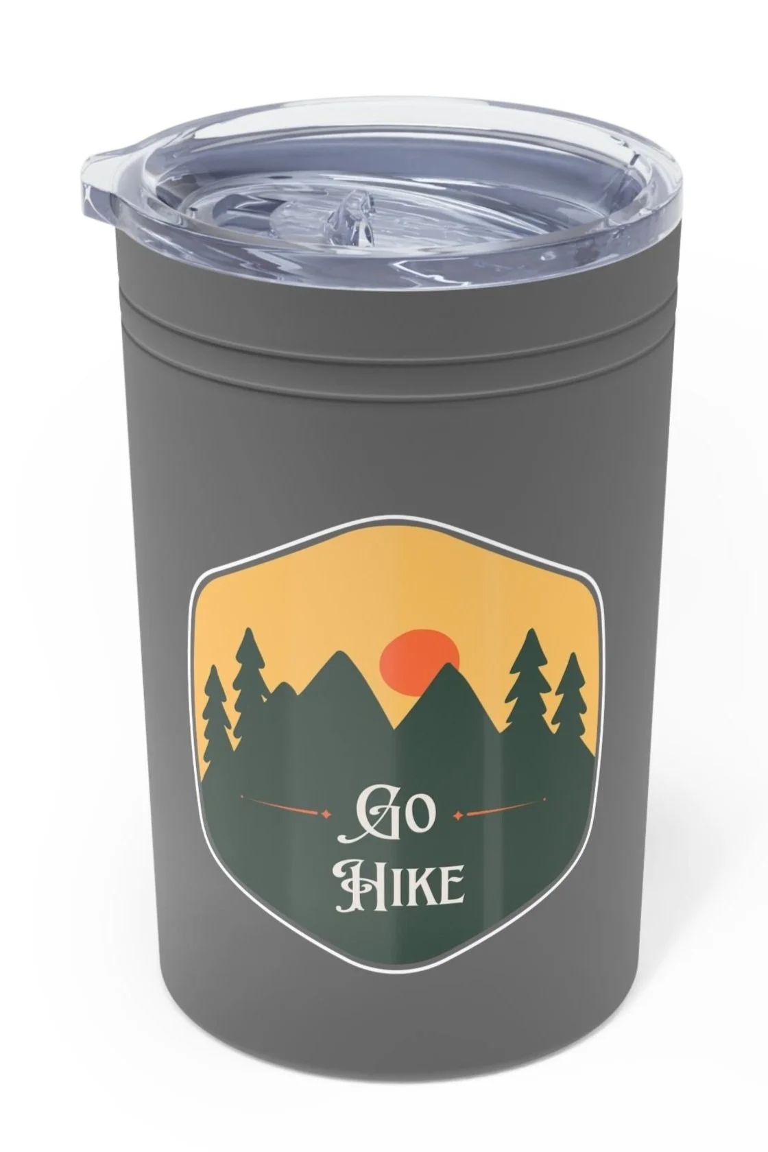 The mountain scene has text on top that reads: Go hike. The graphic repeats on the other side.