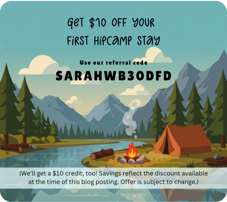 Note: Camping and lodging information is current at the time of this blog posting and subject to change. Please check the most current info, and read all the policies before you book a stay.